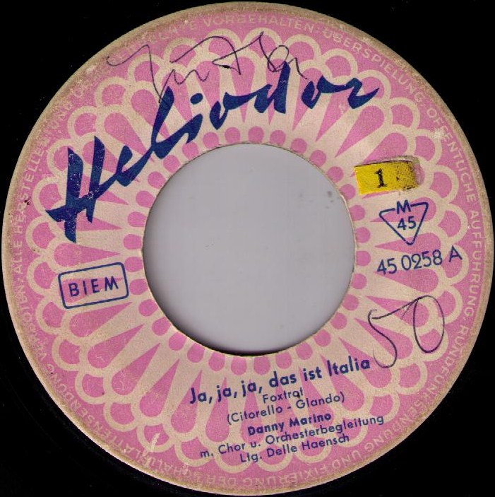 05 58....45 0258 A....Danny Marino m. Chor u. Orchesterbegleitung..Ja, ja, ja, das ist Italia (Lazy Mary)/ B....Musica, Musica