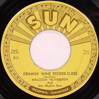 Yelvington and guitarist Gordon Mashburn first heard word of Sam Phillips's Sun Records in 1953, and arranged a meeting. Philips was initially unimpressed with Yelvington and the Star Rhythm Boys, because he was not interest in recording straight-ahead country music; however, he thought the band had potential, and had them audition a large number of songs. The first cut he recorded with them was a blues number written by Sticks McGee called "Drinkin' Wine Spo-Dee-O-Dee". The result was a record with blues roots and a blues feel but a steel guitar that sounded unmistakably country. This recording was issued on Sun Records immediately after Elvis Presley's "That's All Right Mama". Phillips did not give Yelvington promotional backing, and so he and the band self-marketed the record to local stations, to little avail. The record was picked up neither by blues nor by country radio stations, each of which seemed to think it sounded too much like the other.