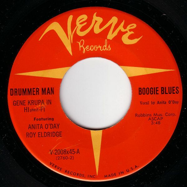 06 56....V-2008x45-A....DRUMMER MAN GENE KRUPA IN HIghest-FI Featuring ANITA O'DAY ROY ELDRIDGE..Boogie Blues..Vocal by Anita O'Day (2760 2)/-B Let Me Off Uptown..Vocal by Anita O'Day and Roy Eldridge (2764 6) (COLUMBIA 37530/37532)