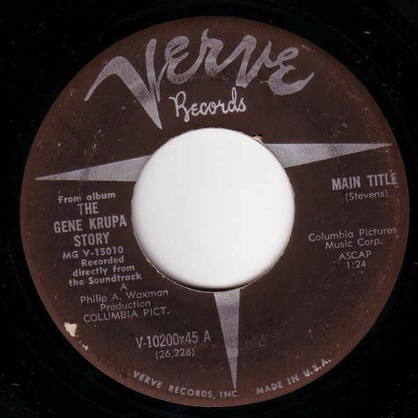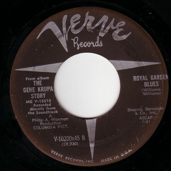 02 60....V-10200x45 A....From album THE GENE KRUPA STORY MG V-15010 Recorded directly from the Soundtrack..Main Title (26,228)/ B....Royal Garden Blues (26,230)