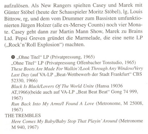 die einzigen Informationen die ich habe sind sehr dürftig, die Band entstammt aus dem Obertaunuskreis und hatte in den frühen bis späten 60's als Beatformation einige Erfolge, u.a. gab es 3 Singles.
