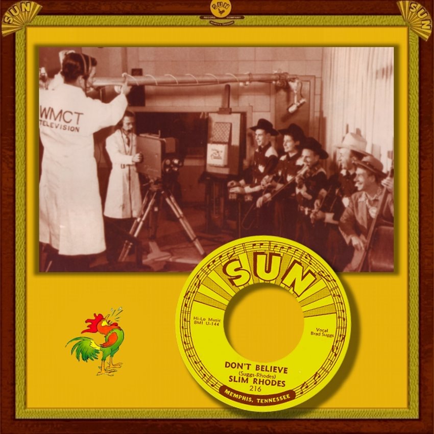 Slim Rhodes (Ethemer Cletus "Slim" Rhodes-g) recordete bei Sam Phillips schon 1950/51 für Gilt-Edge Records und erst seit Februar 1955 für Sun. Zu seinen Mitstreitern bei Sun zählten Dottie Rhodes-vocal, Hilburn "Dusty" Rhodes-vocal, fiddle, Brad Suggs-vocal, g, John Hughey-steel, Gilbert "Speck" Rhodes-b, comedian, Sandy Brooks-vocal*, Johnny Bernero-d*