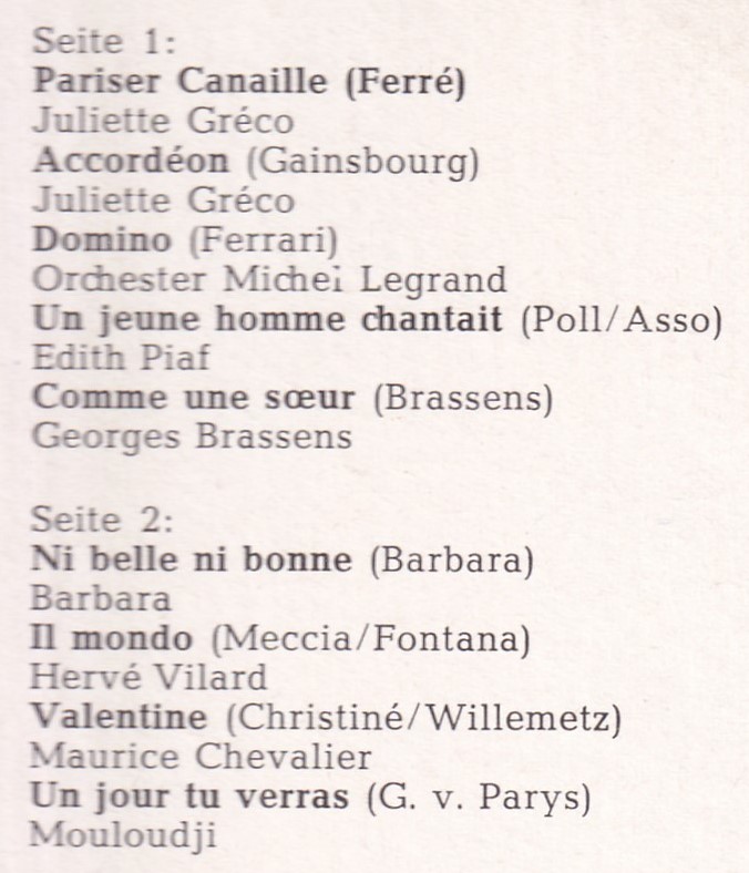 Ein typisches französisches Chanson - in Deutschland sagt man despektierlich "Schlager" dazu...