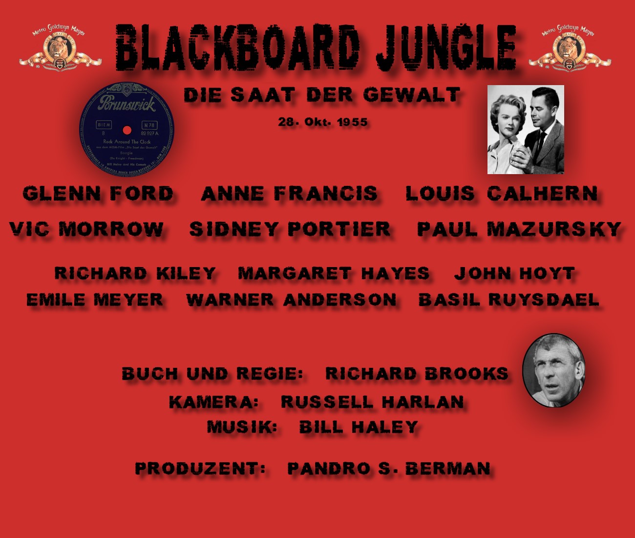 DER FILM BLACKBOARD JUNGLE - ODER IN DEUTSCH "SAAT DER GEWALT" - GILT GEMEINHIN ALS AUSLÖSER DER ROCKNROLL WELLE. OHNE BILL HALEY - ABER MIT "ROCK AROUND THE CLOCK".