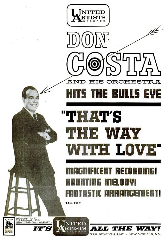 Don Costa arrangierte über 200 Musikerfolge, u.a. mit Barbra Streisand und Dean Martin, in solch unterschiedlichen Genres wie Pop, Jazz, Swing, Disco und Filmmusik.