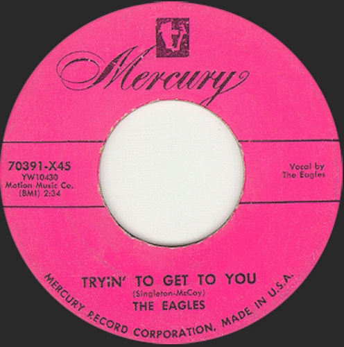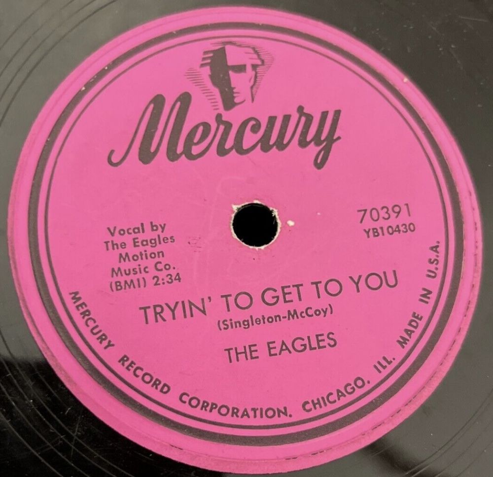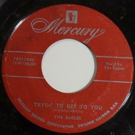 Von den Eagles weiß man nur sicher, dass es deren Mehrere gibt. Daher hier die komplette Single-Disco der schwarzen R&B und Doo-Wap-Gruppe, die Dietrich meint. Sie kamen aus der Gegend Washington, DC und haben bei Sammlern eine gewisse Bekanntheit als Original-Interpreten des Titels "Tryin' To Get To You" erreicht, welcher etwas später von Roy Orbison gecovert wurde. Durch die Cover-Version von Elvis wurde dieser Titel aber dann erst so richtig populär.
