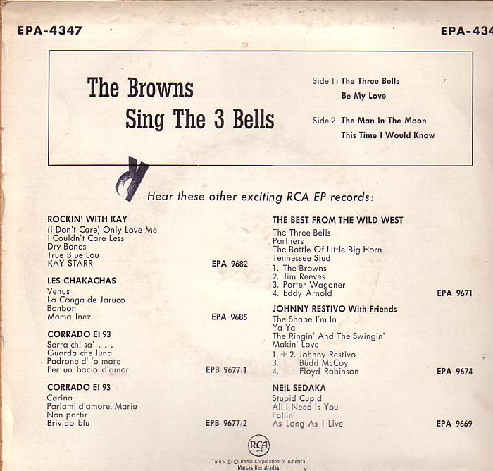 SWEET SOUNDS BY THE BROWNSlyrics inside RCA Victor LSP-2144 1960