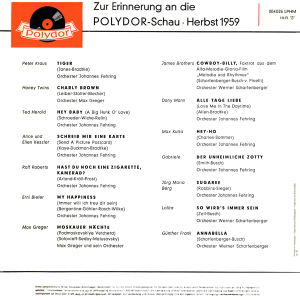 Ich kaufte mir 1961 als Lohn für meine Facharbeiterprüfung das erste Vierspur-Tonbandgerät und nahm sämtliche Singles meiner Freunde als auch meine eigenen auf, natürlich vierspurig und nicht Stereo, um viel auf dem Band unterbringen zu können. Jetzt mache ich mich bei Deutsch-Fans vermutlich wieder unbeliebt, aber deutschsprachige Aufnahmen hatten da nichts verloren, die waren uns suspekt. Wenn ich, nur als Beispiel, an das nette "Jenny" von Udo Jürgens denke haben wir uns immer gefragt "warum ist seine Stimme so laut und das Orchester im Hintergrund fast kaum zu hören?". Die Angst vor dem USA-Sound war sowas von pervers "es darf auf keinen Fall amerikanisch klingen". Und mit diesem Un-Sound konnten wir überhaupt nichts anfangen. Das tragische dabei ist noch dazu, um bei Udo zu bleiben, mit den heutigen Mitteln könnte man sein "Jenny" wunderbar aufbereiten und die damaligen Fehler ausmerzen, aber da kommt, zumindest bei mir, der puristische Sammler-Tick zum Tragen "es wäre dann kein Original mehr", weil so hat es 1960 nie geklungen.