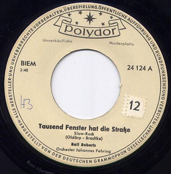 11 59....24 124 A....Ralf Roberts Orchester Johannes Fehring..Tausend Fenster hat die Straße/ B....Ralf Roberts Orchester Werner Scharfenberger..Weit ist das Meer