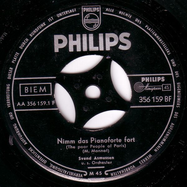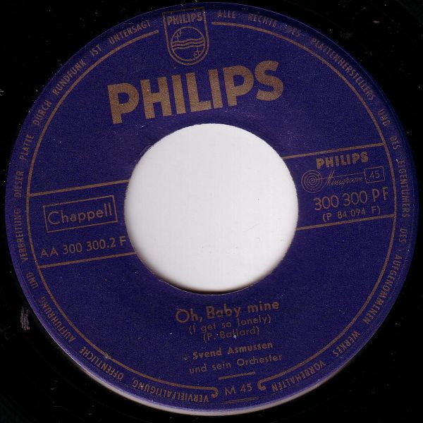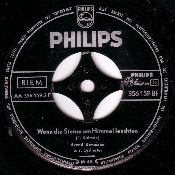 Philips u.a. als SVEND ASMUSSEN und seine beschwingte Zaubergeigen (344978 "Sing, Nachtigall, Sing"/"Tabu"-1957),