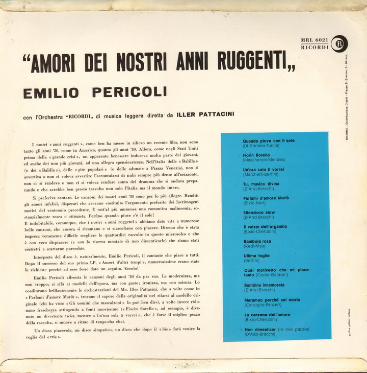 | Information: | EMILIO PERICOLI - AL DI LA - NZ |