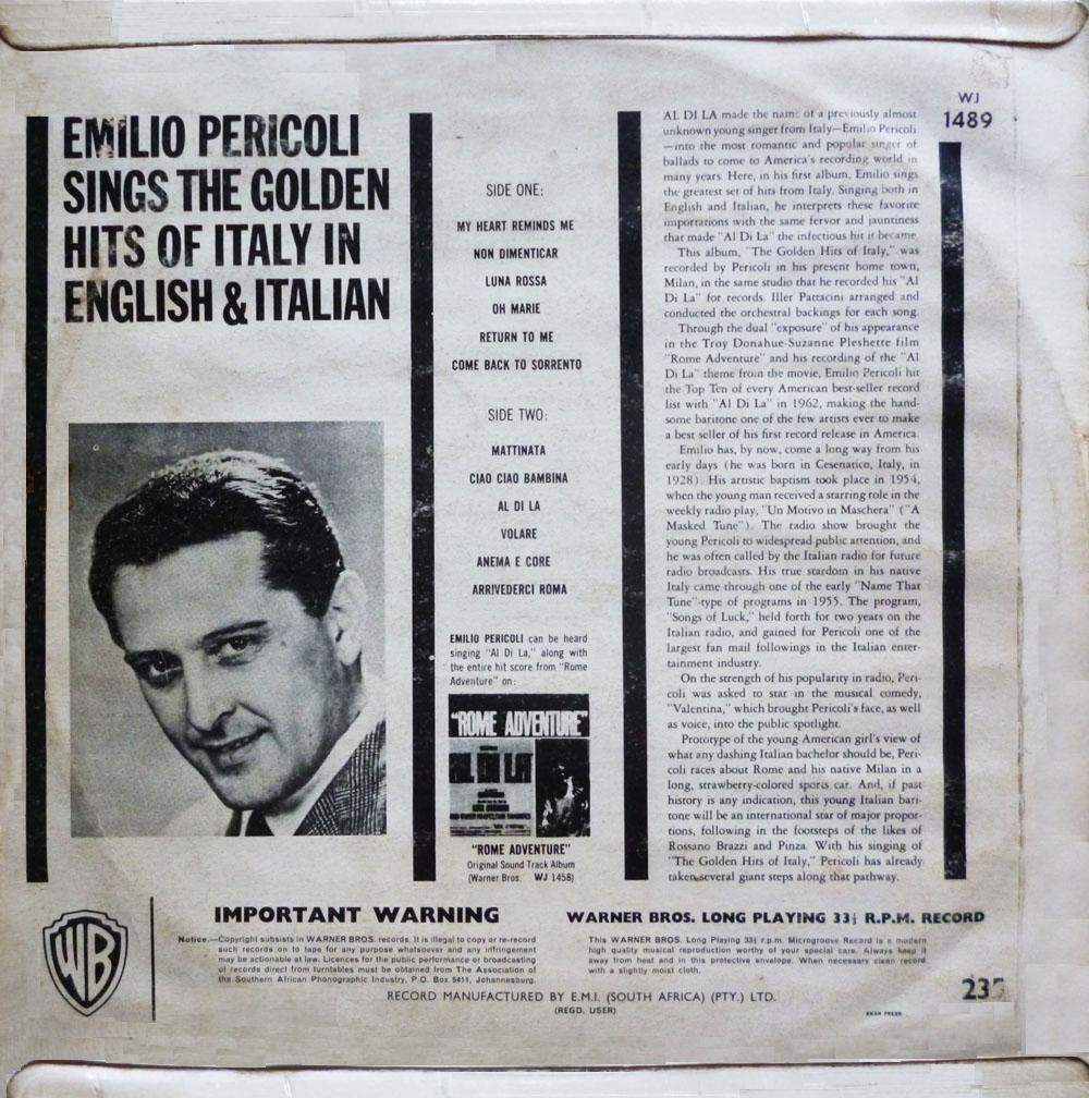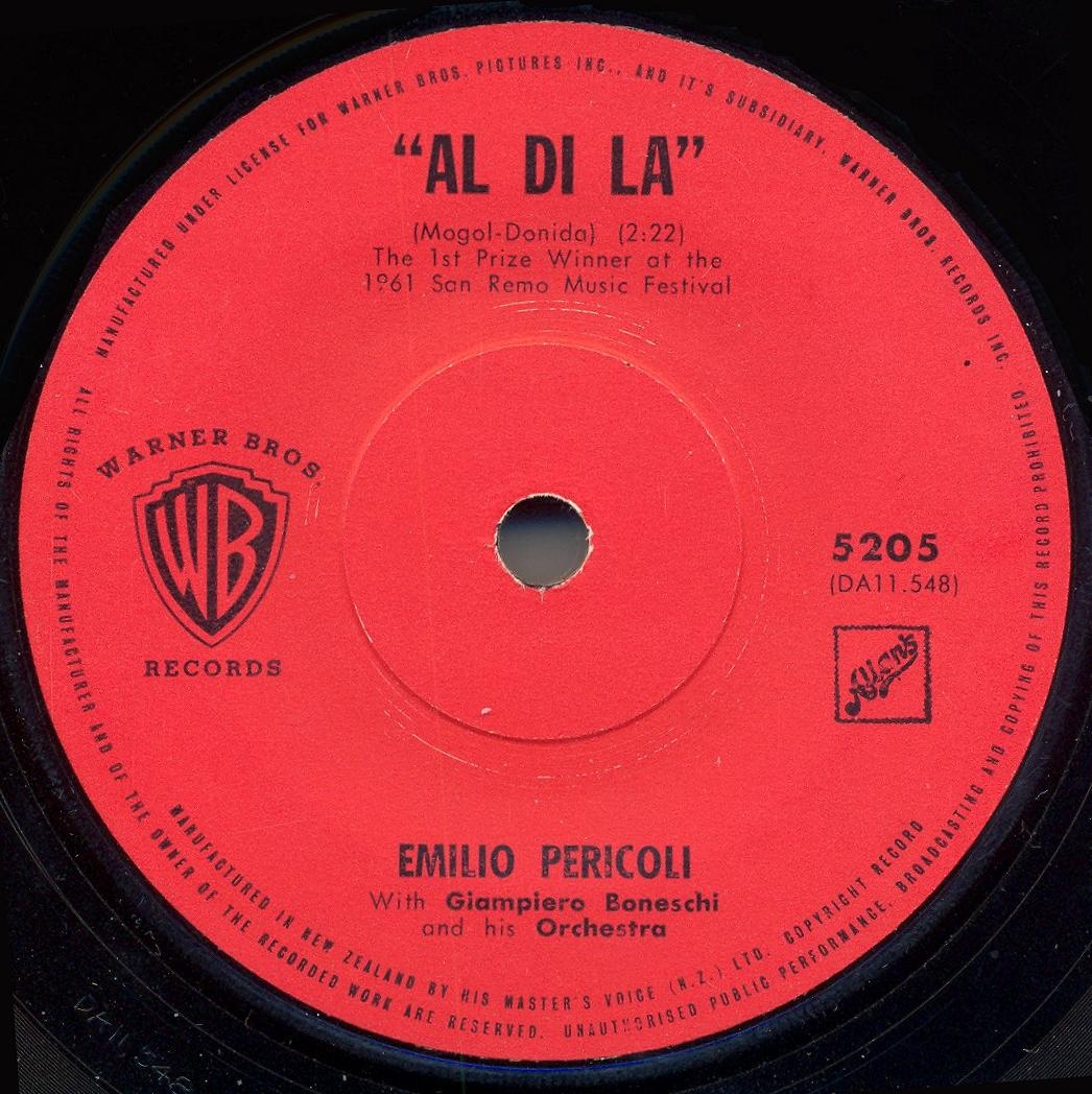 Pericoli's success was closely tied to the Sanremo Festival. He recorded a cover version of the song, "Al di là", by festival winner Betty Curtis. The song was an international success, hitting the charts in the U.S. (#3 AC, #6 Pop) and #30 in UK. It sold over one million copies, and was awarded a gold disc.[3]