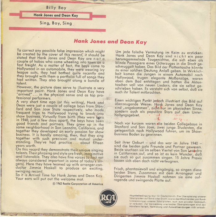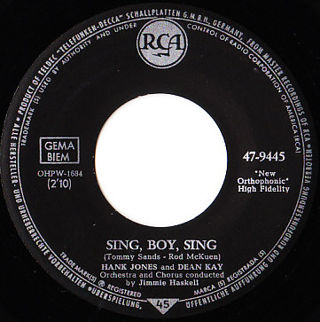 hallo forum habe heute eine deutsche rca single von hank jones & dean kay erhalten zwei coverversionen von johnny preston und tommy sands leider weiß ich über die beiden nichts keep rockin' albert