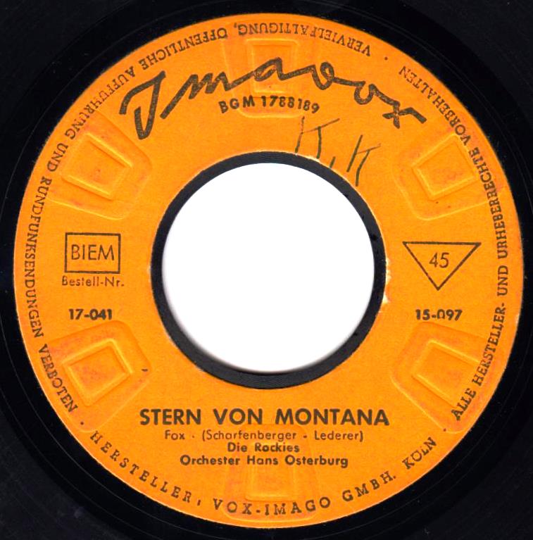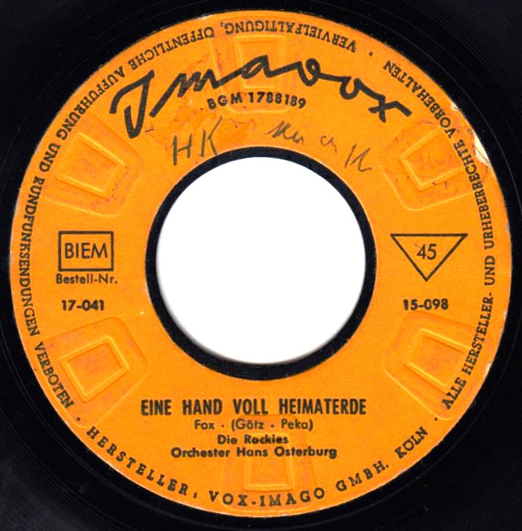 ROCKIES, Die, Gesanggruppe, Heinerle Musik-Parade ("Yes You Little Boy" & DINA van BEEREN), Tip-top ("Yes, You Little Boy" & DINA van BEEREN), Imavox ("Eine Hand Voll Heimaterde"/"Stern Von Montana" & Das Orchester HANS OSTERBURG), Quellux ("Ich Möchte‘ Mit Dir Träumen" & JOE WILKENS u. GINA HELLER, "Mit Siebzehn" & JOE WILKENS, "Hula Baby"/"Baby, Ich Schieß Dir Einen Teddybär" & JOE WILKENS)