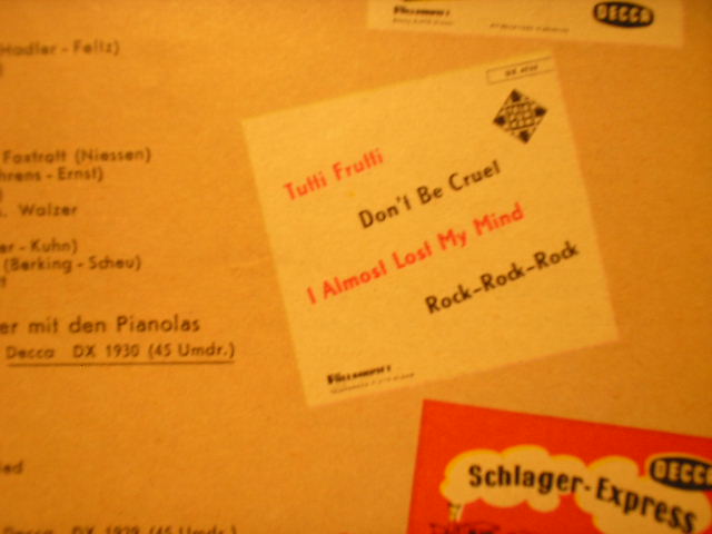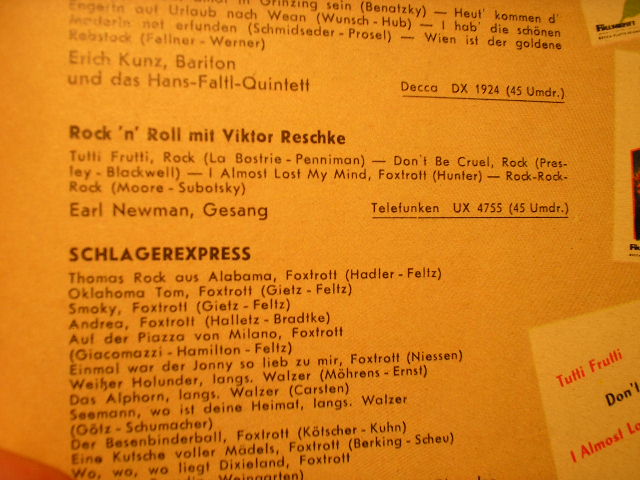 ROCKIES, Die, Tanzmusik ohne Gesang, 1956/57 Telefunken (u.a. "Don’t Be Cruel"/"Hey Rocky" & MUNDHARMONIKA-TRIO HARMONIE, U 45931 "Singin’ The Blues"/"Don’t You Rock Me Daddy-O!", "Tutti Frutti"/"Shake, Rattle And Roll"-1957)