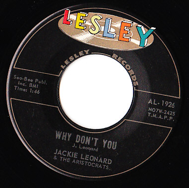 Die Aristocrats bei Jackie Leonard dürften laut Doo-Wop-Bibel jene von HOME OF THE BLUES aus Memphis, Tennessee, sein, die dann offensichtlich von LESLEY in Louisville, Kentucky, als Begleit-Formation engagiert wurden, um ihre Interpreten zu begleiten.