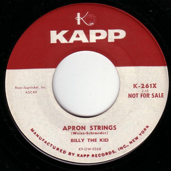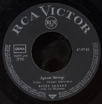 Ich suche die Plattenfirma von Little David, der vermutlich als erster „Apron Strings“ gesungen hat. Er könnte der Sohn von Aaron Schroeder sein, denn er heißt Davis Schroeder. Aaron hat das Lied als CO geschrieben.
