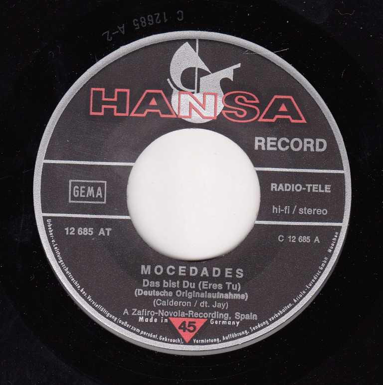 die zweitplatzierten Mocedades coverten sich selbst in deutsch: Das bist du (Hansa 12685).