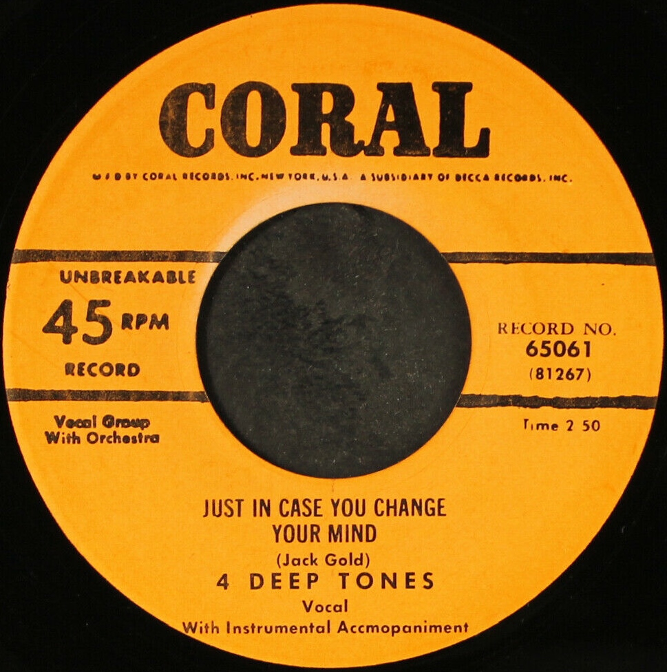 The Deep Tones turned to secular music in 1951, recording "Just In Case You Change Your Mind" and "The Night We Said Goodbye" for the Coral label. The Deep Tones also did uncredited backup for Ella Fitzgerald ("Trying"), "Slim Galliard ("Oh Lady Be Good") and Bill Kenny.