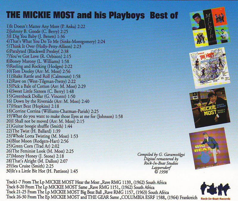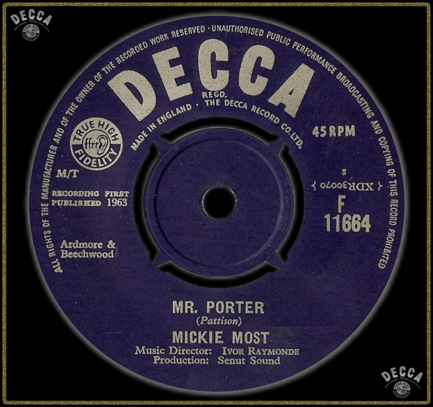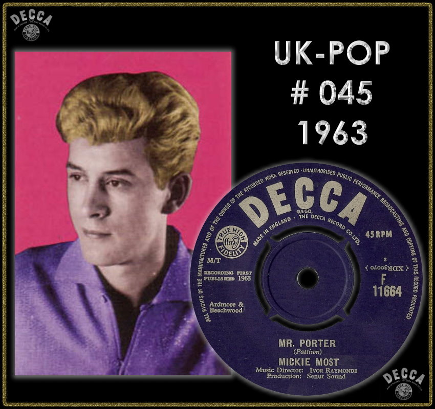 Most was born as born Michael Peter Hayes in Aldershot, Hampshire. The son of a regimental sergeant-major, he moved with his parents to the north London suburb of Harrow in 1951. Most was influenced by skiffle and early rock and roll in his youth. Leaving school at 15, he worked as a singing waiter at London's The 2i's Coffee Bar where he made friends with future business partner Peter Grant, and formed a singing duo with Alex Wharton (aka Alex Murray) who billed themselves as The Most Brothers. They recorded with Decca Records a single "Takes A Whole Lotta Loving to Keep My Baby Happy" before disbanding. Wharton went on to produce the Moody Blues single "Go Now". After changing his name to Mickie Most in 1959, he travelled to South Africa with his wife Christina, and formed a pop group, Mickie Most and the Playboys. The band scored 11 consecutive #1 singles there, mostly with cover versions of Ray Peterson, Gene Vincent, Buddy Holly and Eddie Cochran songs. Returning to London in 1962, Most appeared on package tours as well as recording "Mister Porter", a #45 hit in the UK Singles Chart in July 1963.