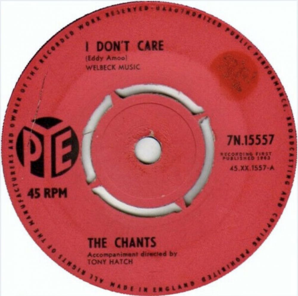 In der speziellen Beatles-Ausgabe der Fernsehshow “Juke Box Jury“ war die erste Platte, die ihnen vorgespielt wurde, “I Could Write A Book“ von The Chants, das sie zum Hit kürten – das aber trotz ihrer positiven Kommentare ein Flop wurde. Die Debüt-Schallplatte von The Chants, “I Don’t Care“, Rückseite “Come Go With Me“, wurde am 17. September 1963 veröffentlicht. Ihre zweite, “I Could Write A Book“, Rückseite “A Thousand Stars“, erschien am 01. Januar 1964. Ihre dritte war “She’s Mine“, Rückseite “Then I’ll Be Home“, im Juni 1964, und ihre letzte Veröffentlichung für Pye war “Sweet Was The Wine“, Rückseite “One Star“, am 11. September 1964.