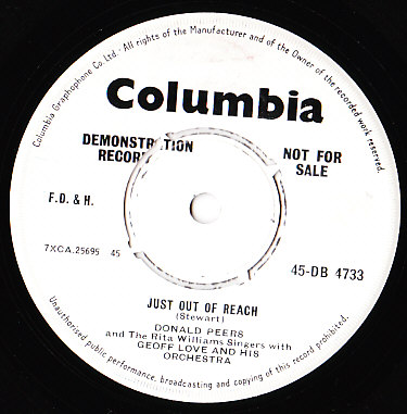 11 61....45-DB 4733....DONALD PEERS and The Rita Williams Singers with GEOFF LOVE AND HIS ORCHESTRA..Where Were You (When I Needed You) (7XCA 25694)/Just Out Of Reach (7XCA 25695)