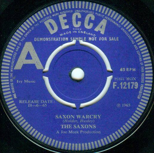 Joe Meek's "Saxons" gab es von 1963 - 1965 und sie hatten vermutlich nur eine Single im Juni 1965 auf den Markt gebracht (DECCA F. 12179).