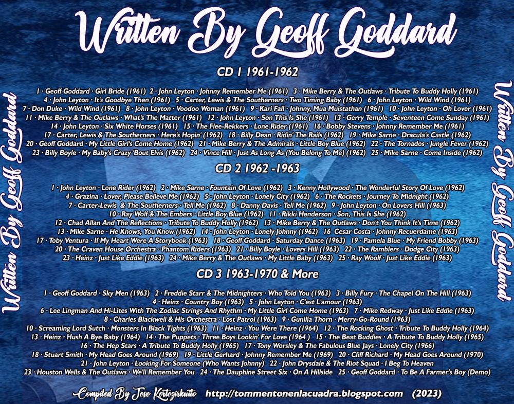 Joe Meek hat im Laufe seiner Karriere als unabhängiger Produzent 25 Platten in den britischen Top 40 unterbringen können. Allein neun davon stammen aus der Feder seines - neben Dave Adams wohl engsten - Mitstreiters Geoffrey Goddard; weitere fünf sind Gemeinschaftsarbeiten von Meek und Goddard. Meeks erste Nummer 1, "Johnny Remember Me", stammte ebenso von Goddard wie "Just Like Eddie" und "Tribute To Buddy Holly".