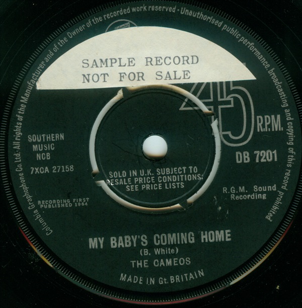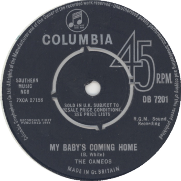 01.1964 THE CAMEOS My Baby's Coming Home -- Where E'er You Walk Columbia DB 7201 - GB Anhänge an diesem Beitrag Dateiname: DB 7201_B.jpg Dateigröße: 142.15 KB Titel: DB 7201_B.jpg Heruntergeladen: 320 Dateiname: DB 7201_A.jpg Dateigröße: 142.29 KB Titel: DB 7201_A.jpg Heruntergeladen: 292