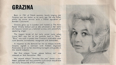 Hier handelt es sich wieder einmal um eine Robert Stigwood-Produktion, zu dessen Managment Grazina (nannte sich auch Grazina Frame) neben u.A. Mike Sarne oder John Leyton gehörte.