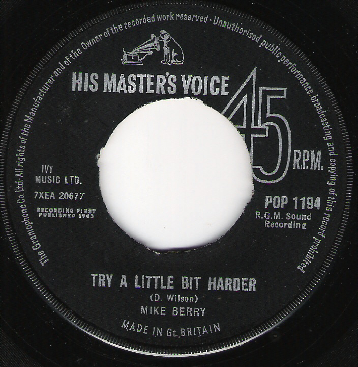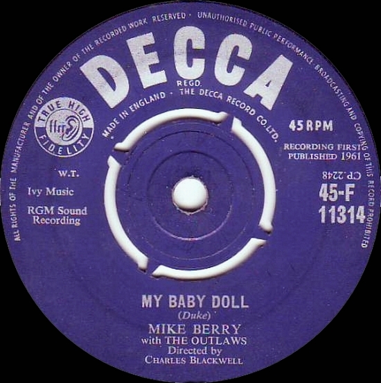 01 61....45-F 11314....MIKE BERRY with The Outlaws..Will You Love Me Tomorrow/My Baby Doll