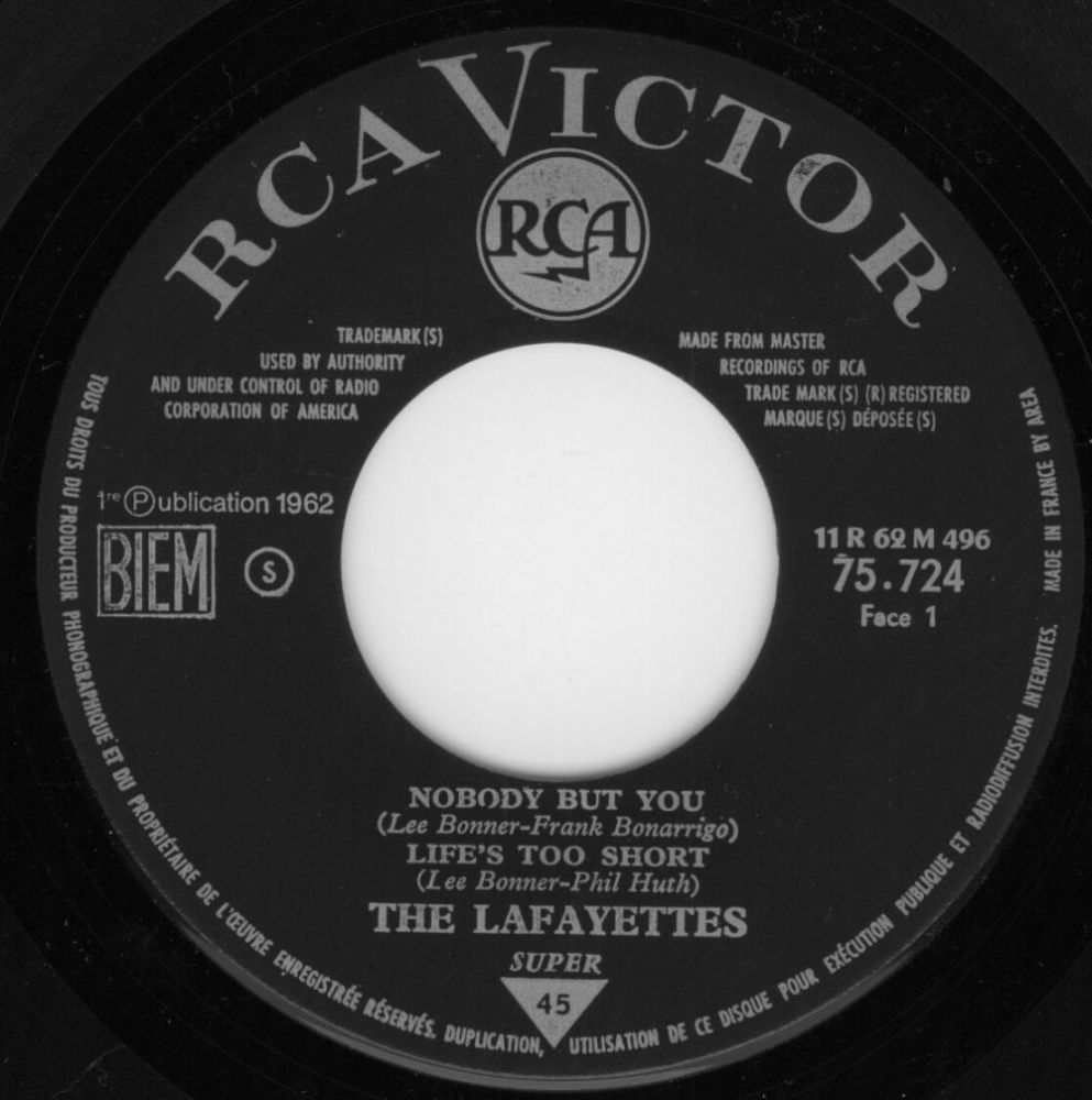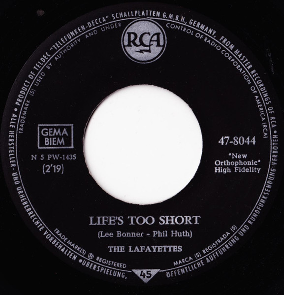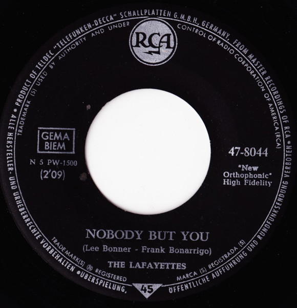 08 62....47-8044....THE LAFAYETTES Nobody But You (eigene deutsche Matrix: N 5 PW-1500)/Life's Too Short (RCA VICTOR 8044)