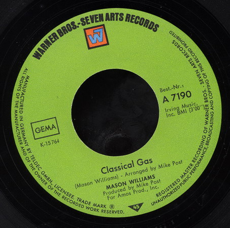 "Classical gas" (1968) wurde u.a. gecovert von Glen Campbell, Ventures, Hugo Montenegro,