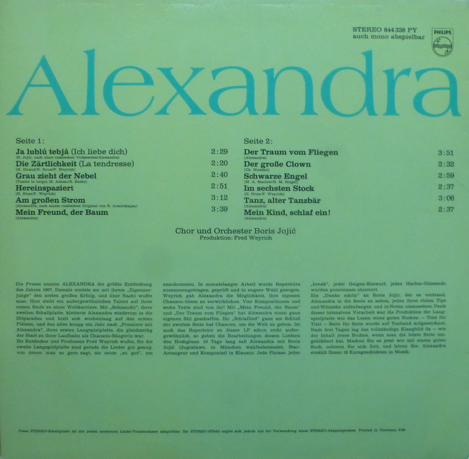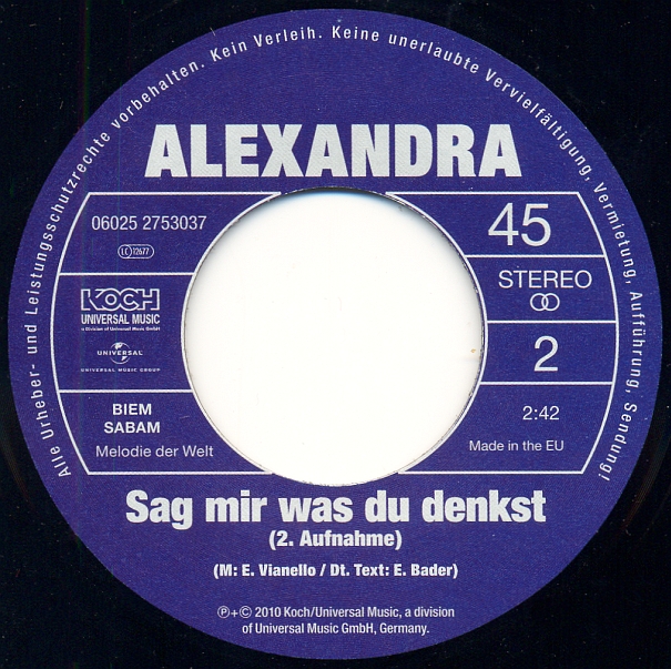 so manches Schlagersternchen findet hier im Rock'n'Roll Schallplatten-Forum sein Plätzchen. Aber kein einziger Beitrag über die, unter tragischen Umständen, schon vor 40 Jahren verstorbene ALEXANDRA. Meine neueste Single-Erwerbung möchte ich euch vorstellen.