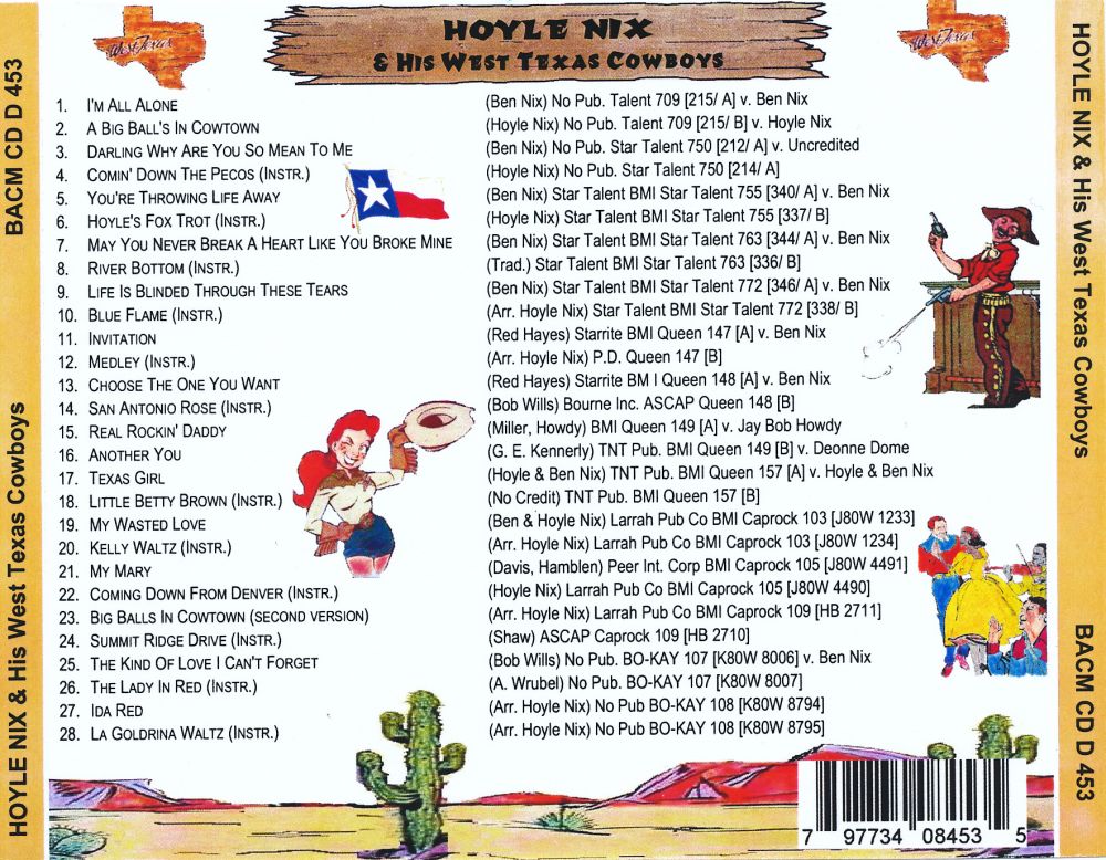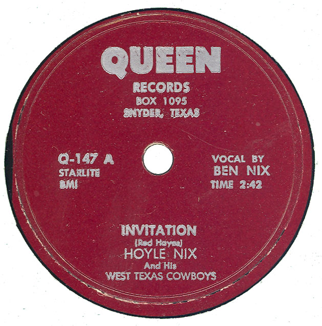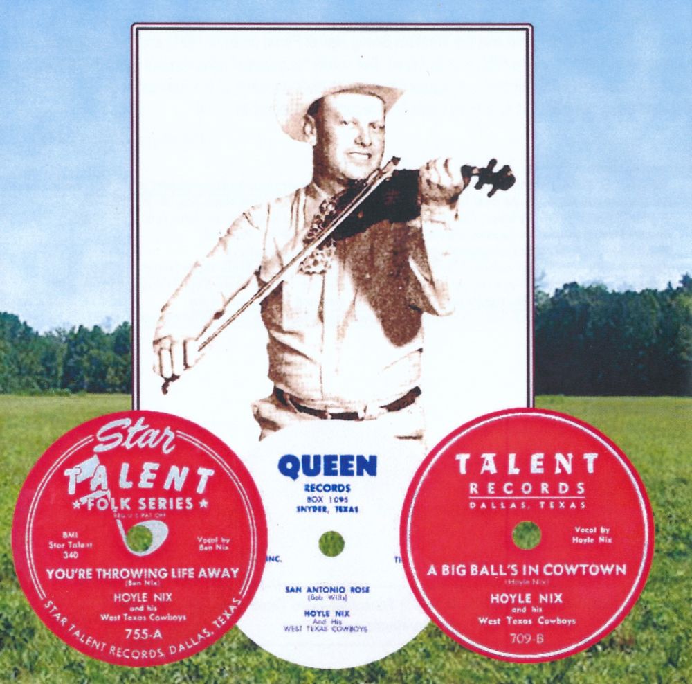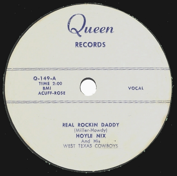 Der Fiddler und Band-Leader Hoyle Nix wurde am 22. März 1918 in Azle, Texas, geboren und verstarb nach kurzer Krankheit am 21. August 1985 in Big Springs, Texas. Mit seinen West Texas Cowboys beherrschte er lange Zeit die Western Swing Szene in Texas. 1955 gründete er zusammen mit Wink Lewis, der als Interpret manchmal auch das Pseudonym "Jay-Bob Howdy" verwendete, das QUEEN-Label, welches 1956, nach Weggang von Wink Lewis wieder in der Versenkung verschwand. In dieser kurzen Zeit wurden rund ein Dutzend Singles und noch dazu mit geringen Auflagen veröffentlicht. Um es philatelistisch auszudrücken, sie wurden dadurch für den Sammler zur blauen und roten Mauritius.