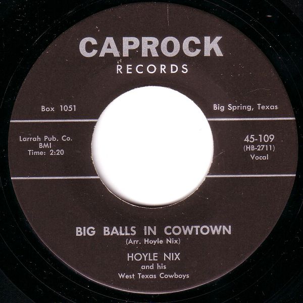 ?? 50....709....HOYLE NIX'S WEST TEXAS COWBOYS..Big Balls In Cowtown/I'm All Alone