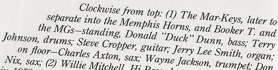 Steve Cropper, Gitarre, Donald "Duck" Dunn, Bass, Charles "Packy" Axton, Tenorsaxophon, Don Nix, Saxophon, James Terry Johnson, Klavier und Schlagzeug, Wayne Jackson, Posaune und Trompete, Jerry Lee "Smoochie" Smith und Booker T. Jones, Keyboards, Isaac Hayes, Orgel, und Al Jackson Jr. Schlagzeug waren die zehn Musiker, die die Mar-Keys bildeten. Sie wurden quasi die Studiomusiker des SATELLITE-Labels das nach dem Oktober 1961 auf STAX umbenannt wurde.