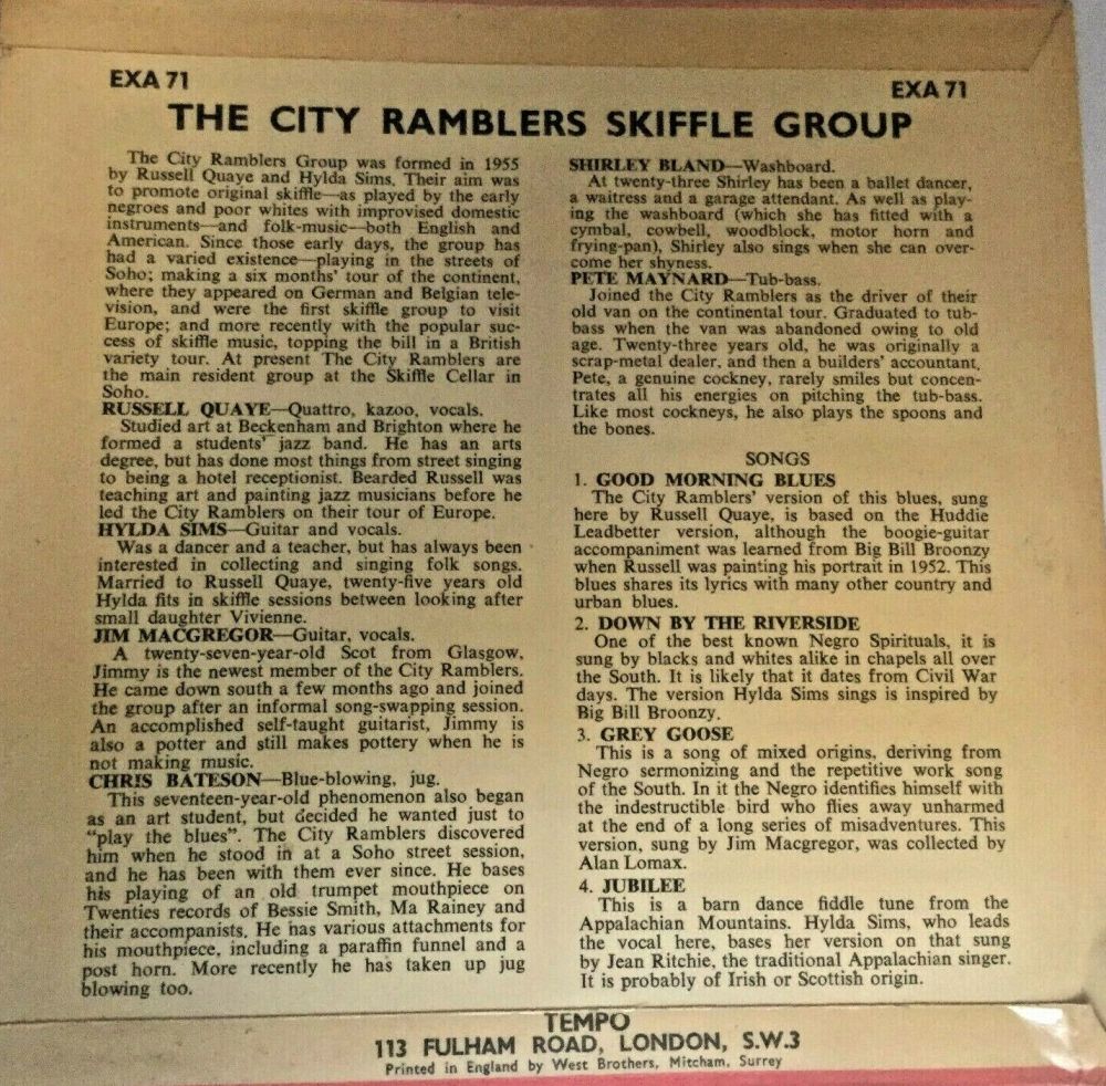 (Russell Quaye-quattro, vocal, + 1984, Hylda Sims-guitar, Vocal, Chris Bateson-trumpet, mouthpiece, Anthony Buquet-tuba, bass, Alan Sutton-washboard),