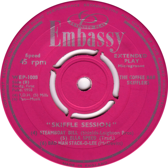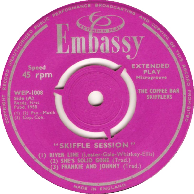 6 Aufnahmen für Embassy WEP 1008 u.a. „Ella Speed“* und „He’s Solid Gone“ 1958 interpretiert durch Nancy Whiskey and her Skifflers (Oriole CB 1394),