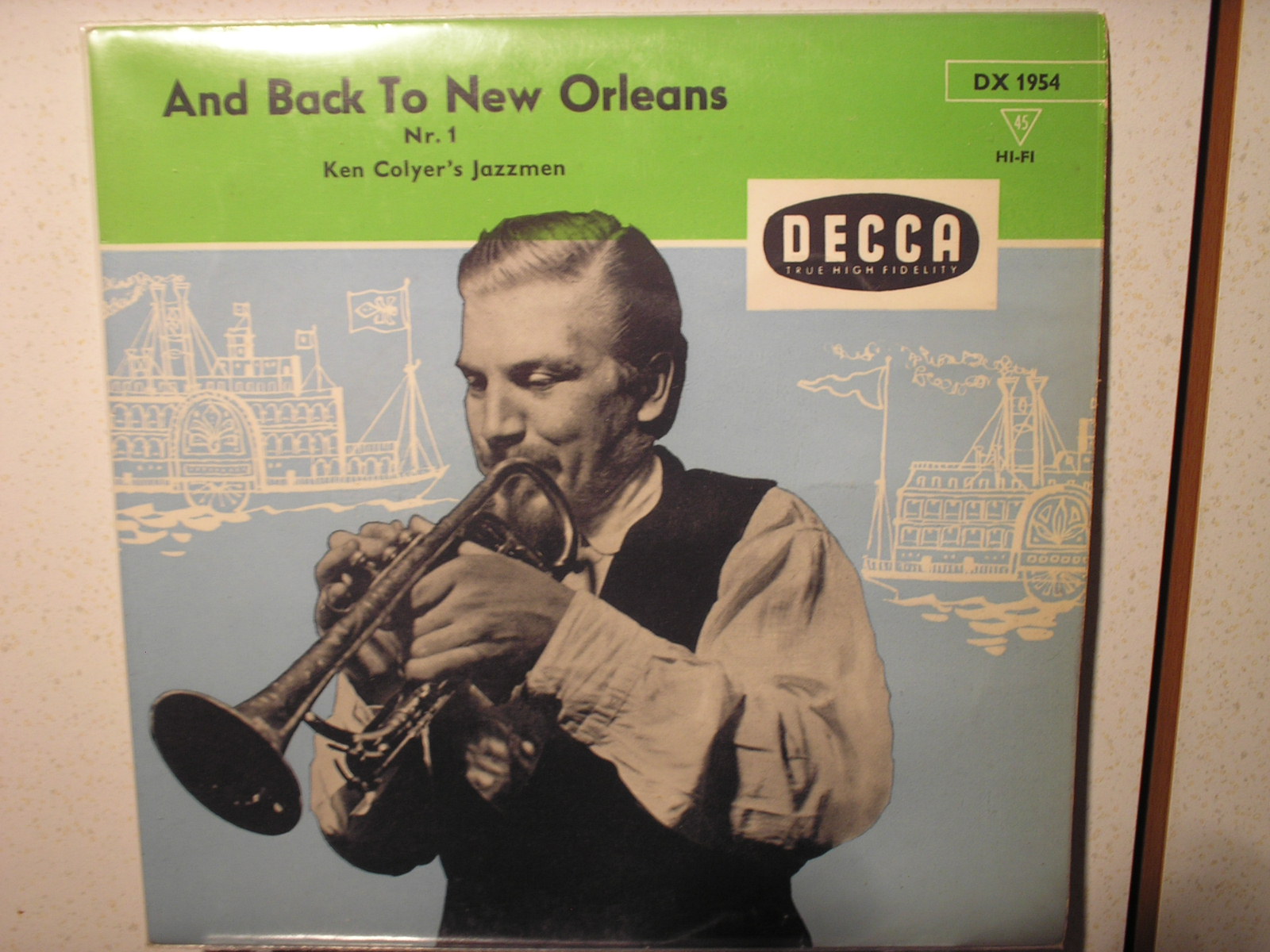 Hier noch eine EP-Single von Old Ken Colyer, DECCA Deutschland, DX-1954, And back to New Orleans. Titel: The Sheik of Araby, Hiawatha und Dallas Blues.