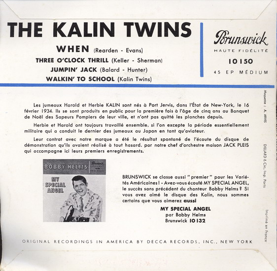heute , The Kalin Twins ihre 2. te Ep auf Brunswick ( Forget Me Not )