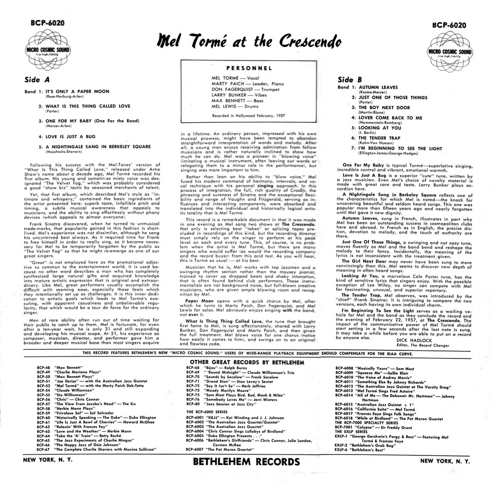 Rock'n Roll singt Mel Tormé hier nicht. Swing-Jazz trifft die Sache schon eher. Sehr schönes Bildcover. Bei dieser Gelegenheit: ich suche schon ewig die Mel Tormé Single "Coming home Baby" (deutsche Atlantic bzw. London / UK). Hat jemand die doppelt oder stellt das Atlantic-Bildcover hier mal ein? Die Hoffnung stirbt zuletzt.