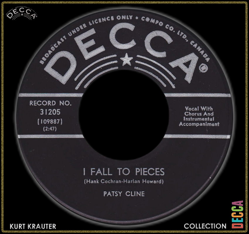 10 61....12 236 A....PATSY CLINE..I Fall To Pieces/ B....Lovin' In Vain (DECCA 31205)