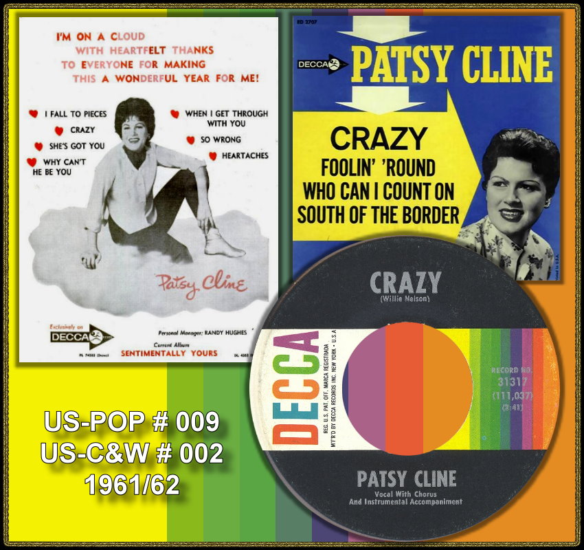 01 62....12 241 A....PATSY CLINE..Crazy/ B....Who Can I Count On (DECCA 31317)