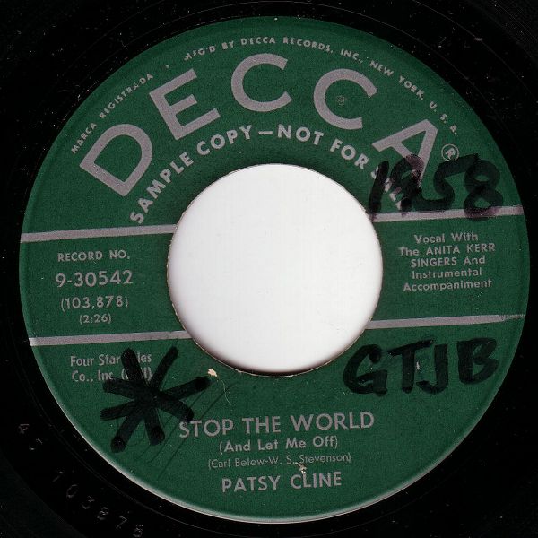 01 58....9-30542....PATSY CLINE Vocal With The ANITA KERR SINGERS And Instrumental Accompaniment..Stop The World (And Let Me Off) (103,878)/Walking Dream (103,879)