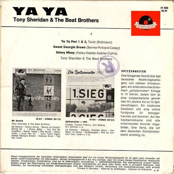 Die Beatles wurden " nur " als Begleittruppe für Tony Sheridan angeheuert. Ihr Name auf dem Aufnahmeprotokoll Beat- Brothers !