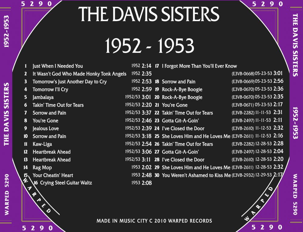 Sie nahm den Namen ihrer Gesangspartnerin Betty Jack Davis (geb. am 04.03.1932 in Corbin, Kentucky, gest. am 02.08.1953 in Cincinnati, Ohio) an und firmierte mit ihr unter dem Namen "The Davis Sisters.