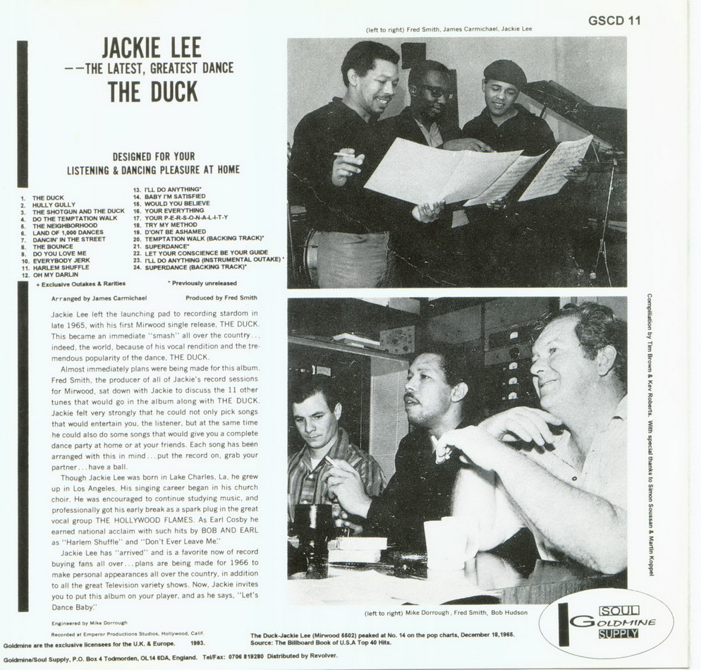 Earl Nelson wurde am 8. September 1928 in Lake Charles, Louisiana, als Earl Lee Nelson geboren und verstarb am 12. Juli 2008 in Los Angeles, Kalifornien. Earl Nelson war Mitglied bei diversen Formationen und hatte eine Reihe von Pseudonymen wie Jackie Lee (nicht zu verwechseln mit dem Pianisten auf CORAL), Jay Dee, Earl Crosby etc. Er war auch der beständigere Teil des Duos Bob & Earl. Bob war zuerst Robert Byrd alias Bobby Day und danach Bobby Relf:
