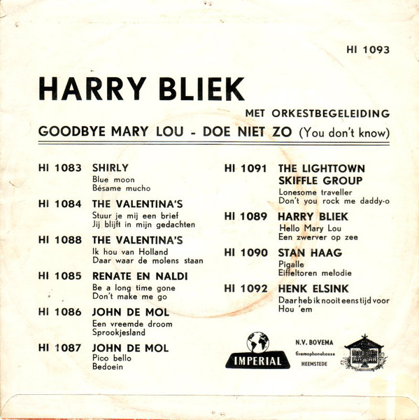 Harry Bliek aus Hilversum (geb.1938) mit einer frühen Coverversion (1961) von Gene Pitney's
