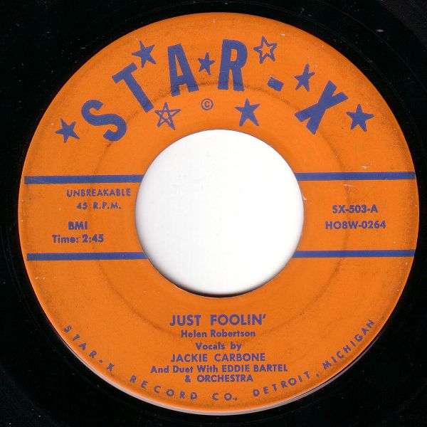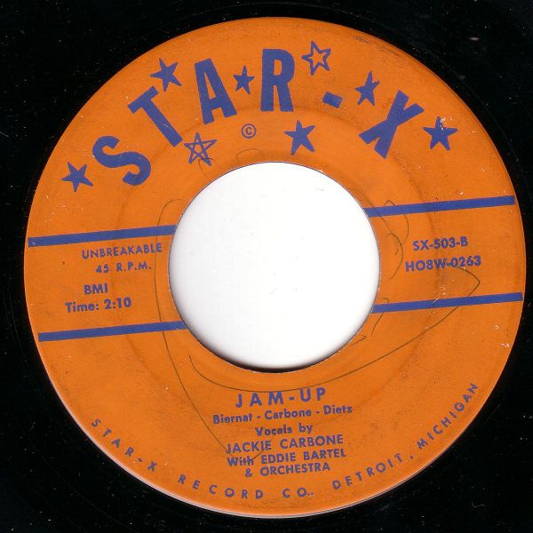 12 57....SX-503-A....Vocals by JACKIE CARBONE And Duet With EDDIE BARTEL & ORCHESTRA..Just Foolin' (HO8W 0264)/-B....Vocals by JACKIE CARBONE With EDDIE BARTEL & ORCHESTRA..Jam-Up (HO8W 0263)